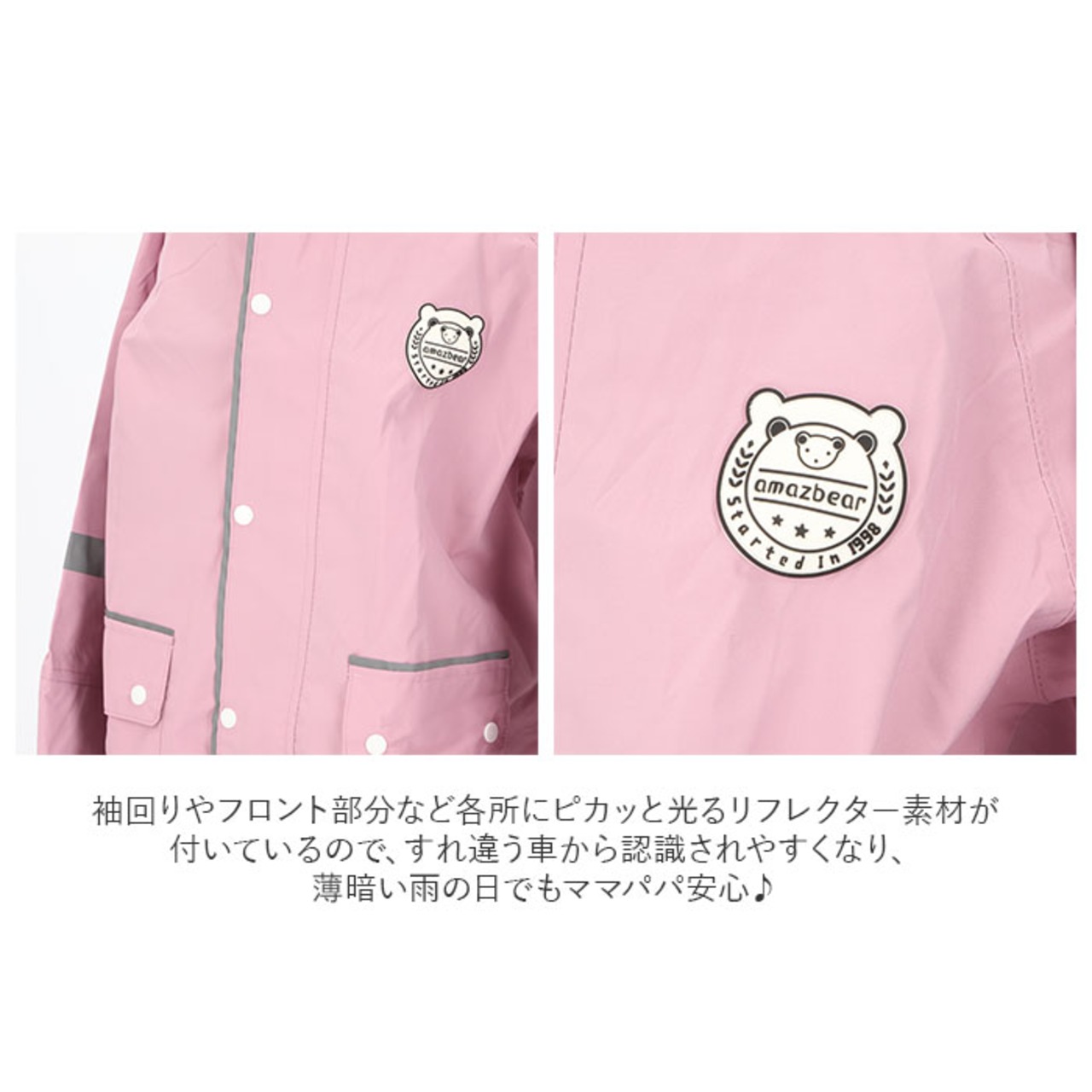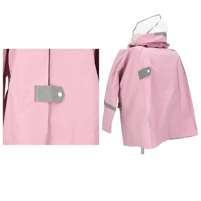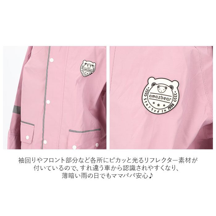 ・袖回りやフロント部分など各所にピカッと光るリフレクター素材が付いているので、すれ違う車から認識されやすくなり、薄暗い雨の日でもママパパ安心♪