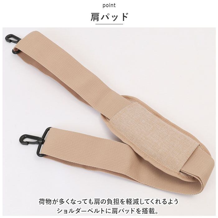 ・長さ調節ができるショルダーベルト付属。手持ちでも肩掛けでもシーンに合わせてスタイルを選べる。