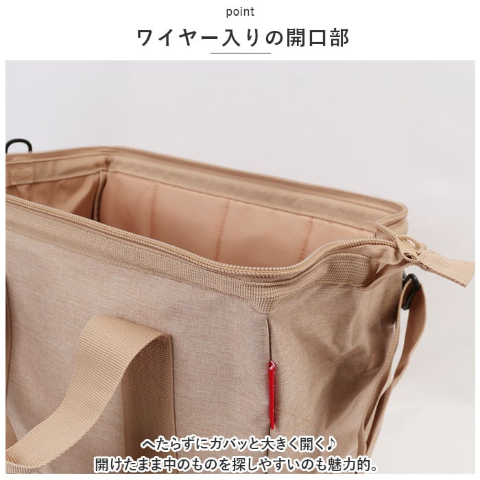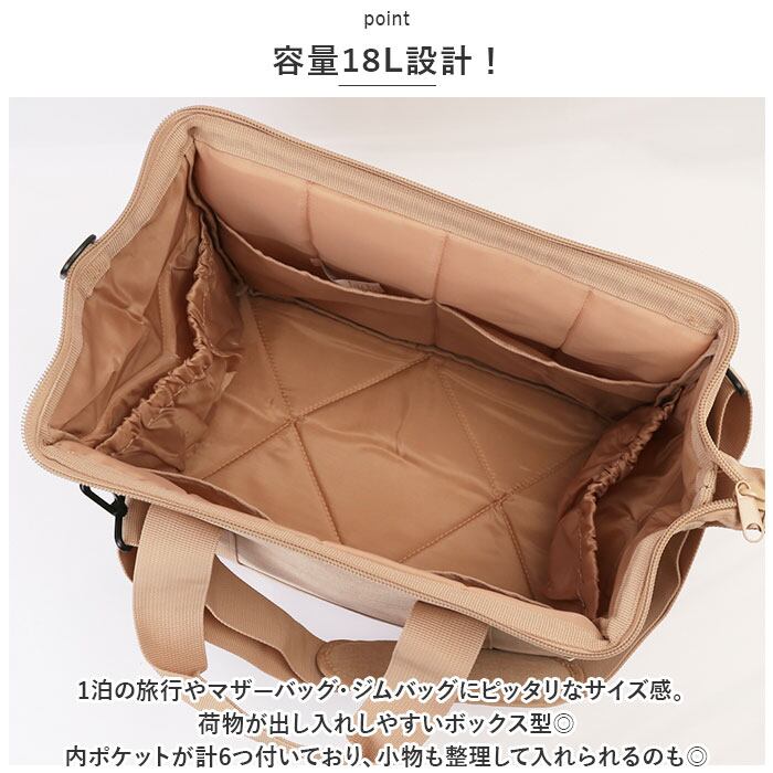 1泊の旅行やマザーバッグ・ジムバッグにピッタリなサイズ感。荷物が出し入れしやすいボックス型◎