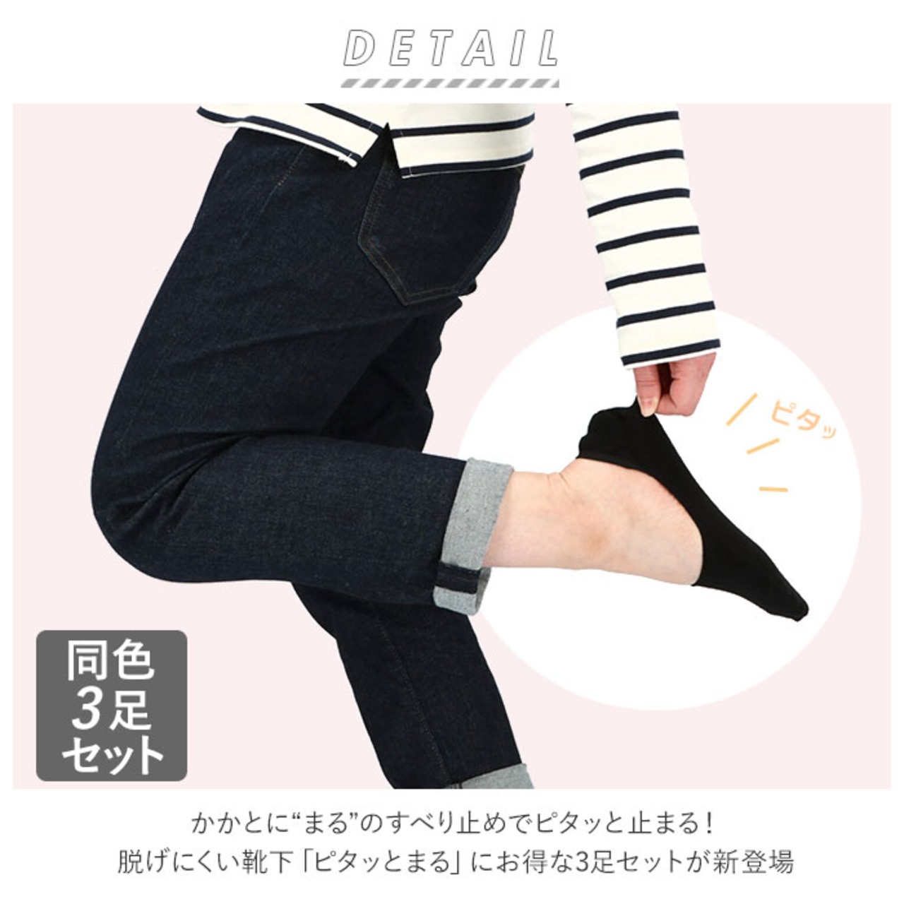 ・かかとに“まる”のすべり止めでピタッと止まる!脱げにくい靴下「ピタッとまる」にお得な3足セットが新登場。