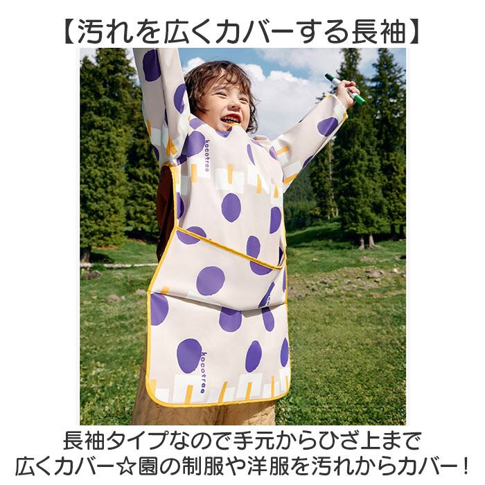 ・長袖タイプなので手元からひざ上まで広くカバー☆園の制服や洋服を汚れからカバー!