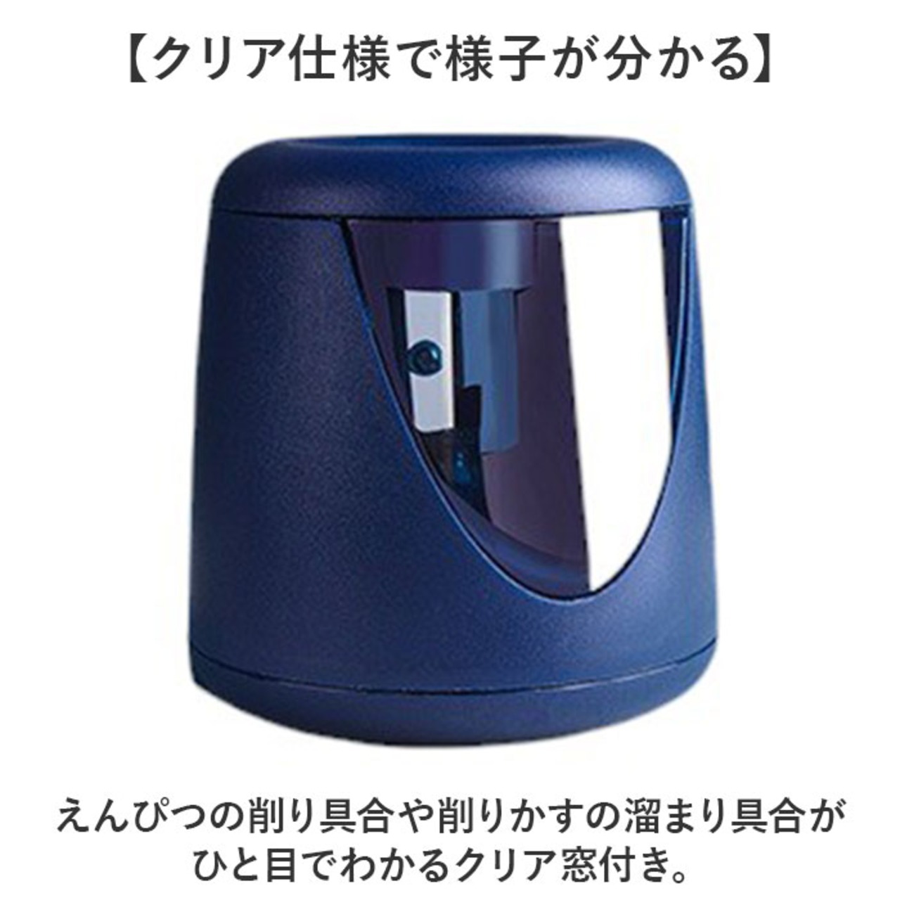 ・えんぴつの削り具合や削りかすの溜まり具合がひと目でわかるクリア窓付き。