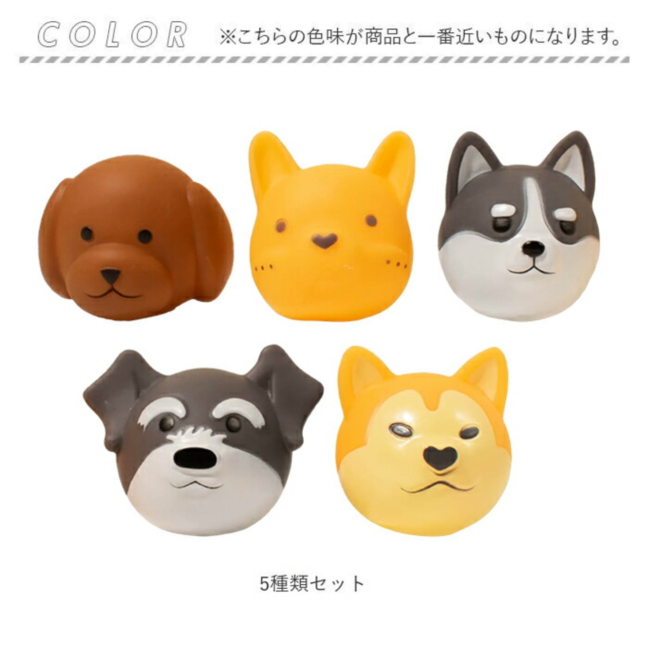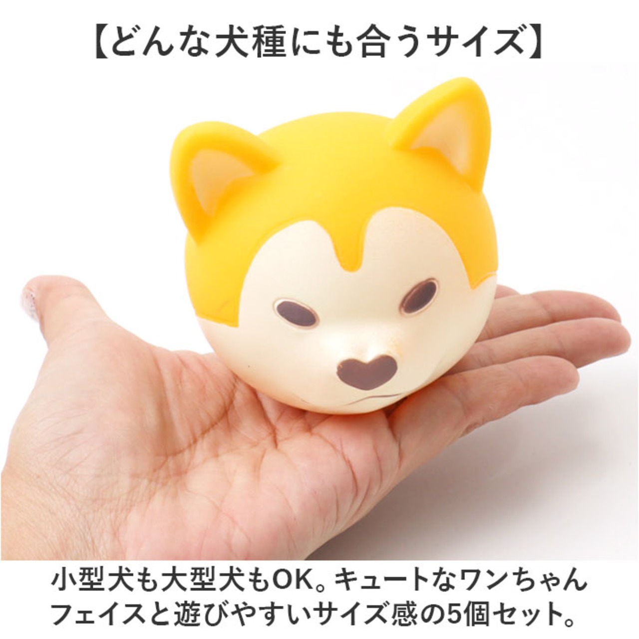 ・小型犬も大型犬もOK。キュートなワンちゃんフェイスと遊びやすいサイズ感の5個セット。