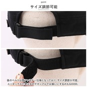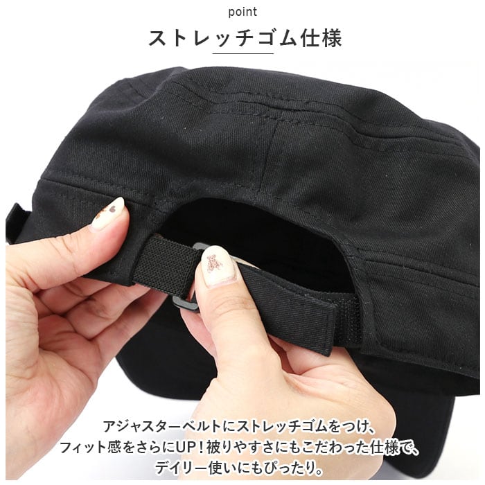 ・アジャスターベルトにストレッチゴムをつけ、フィット感をさらにUP!被りやすさにもこだわった仕様で、デイリー使いにもぴったり。