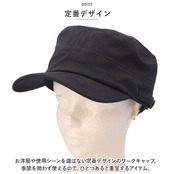 ・お洋服や使用シーンを選ばない定番デザインのワークキャップ。季節を問わず使えるので、ひとつあると重宝するアイテム。