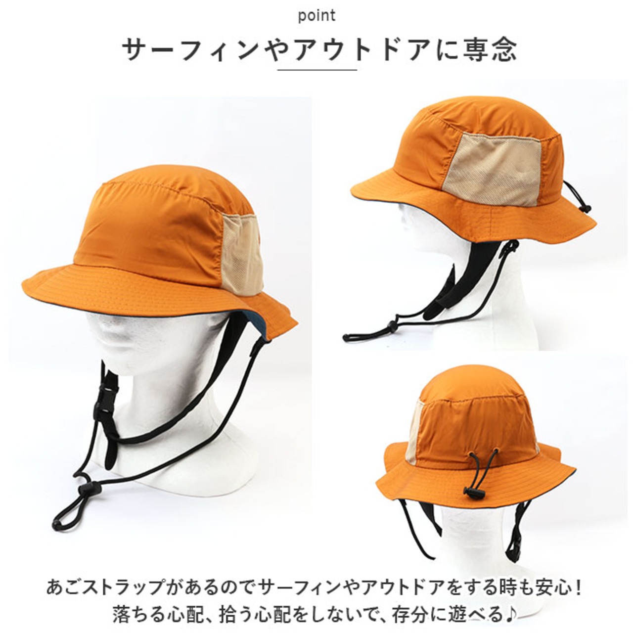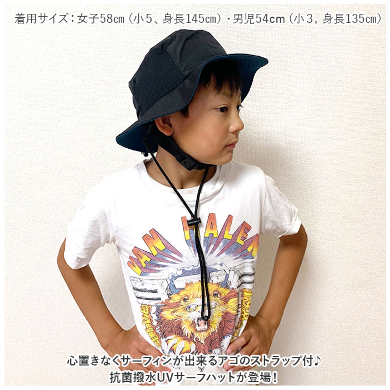 ・心置きなくサーフィンが出来るアゴのストラップ付♪抗菌撥水UVサーフハットが登場!