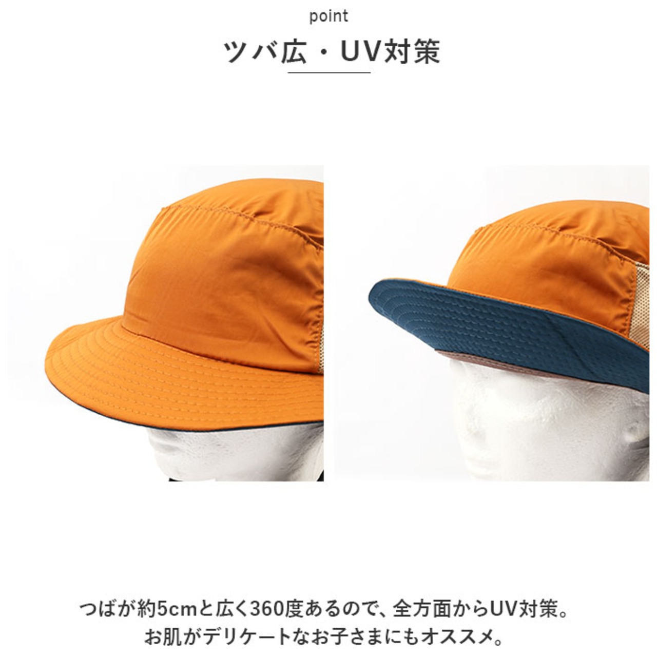・つばが約5cmと広くしっかりUV対策。お肌がデリケートな方にもオススメ。