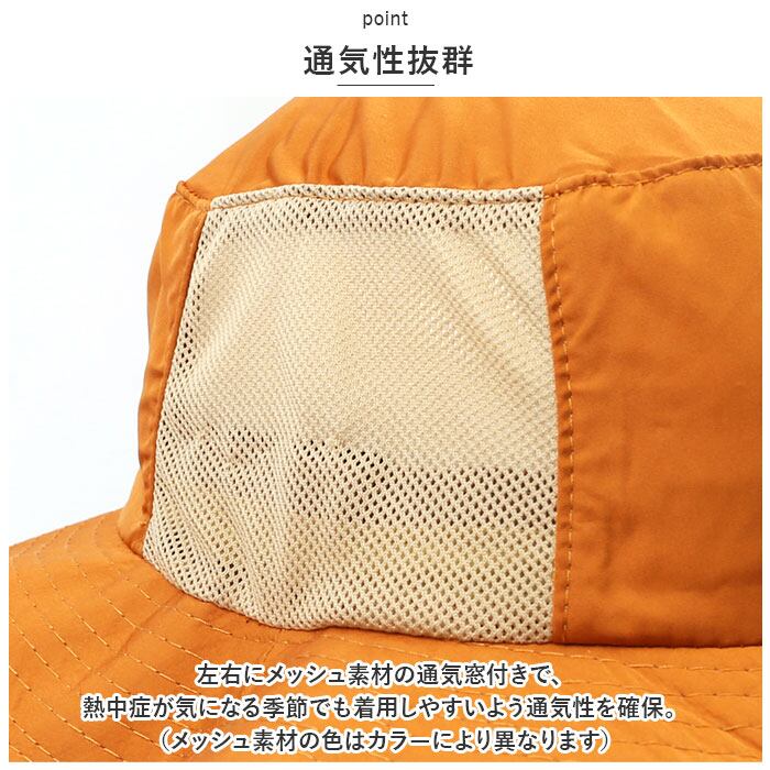 ・左右にメッシュ素材の通気窓付きで、熱中症が気になる季節でも着用しやすいよう通気性を確保。(メッシュ素材の色はカラーにより異なります)