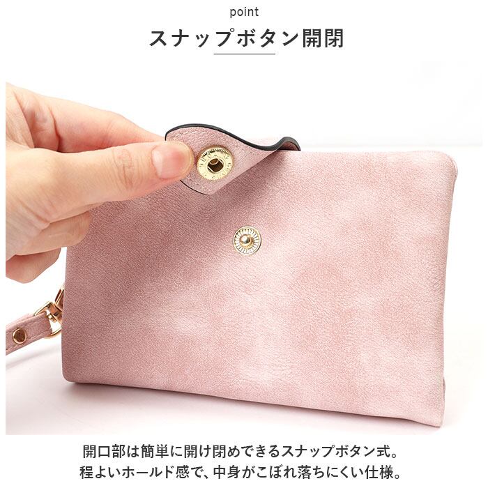 ・サイドのDカンに付属のストラップ紐を取り付け♪ストラップを手首に通せば、手持ちもラクラク。