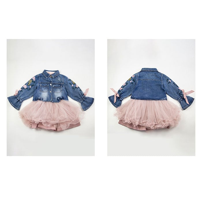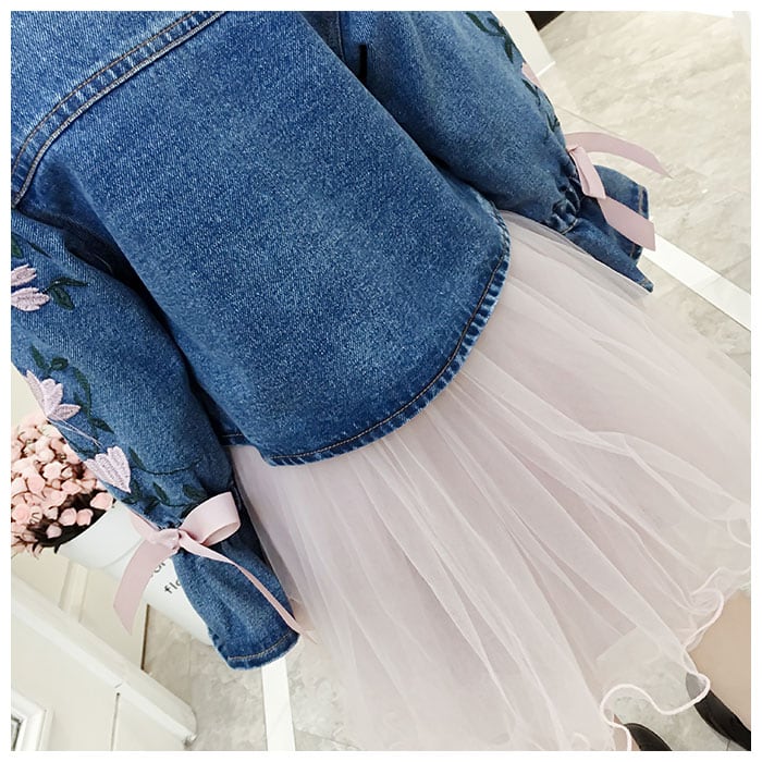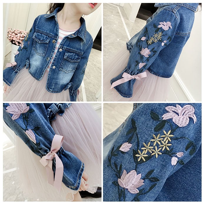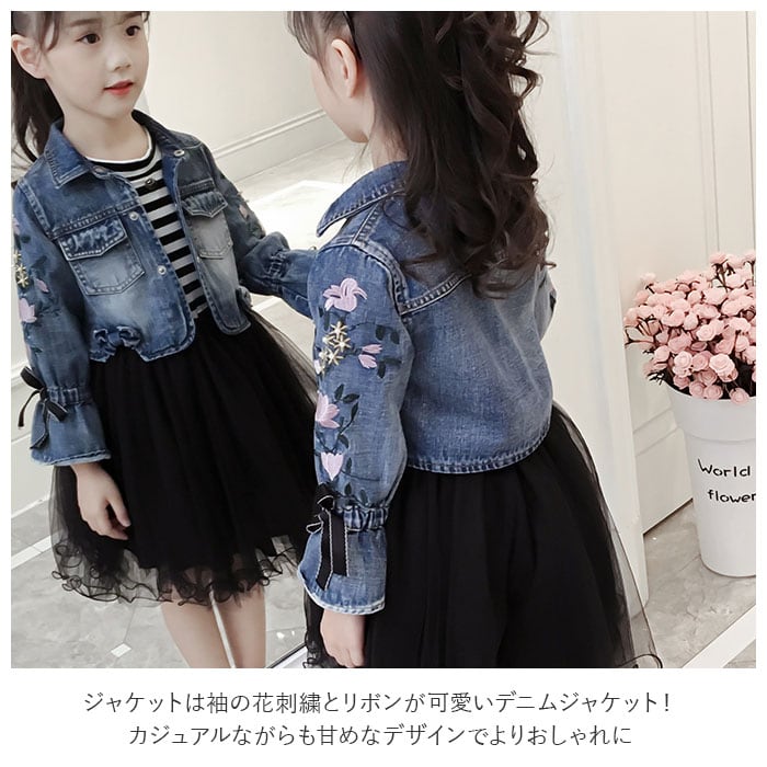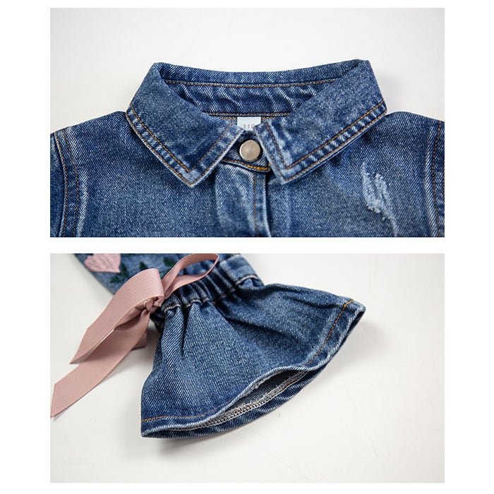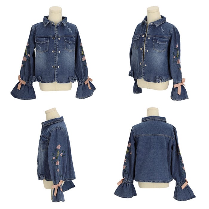 ・ジャケットは袖の花刺繍とリボンが可愛いデニムジャケット!カジュアルながらも甘めなデザインでよりおしゃれに。左右に小さめのハンカチが入る胸ポケット付き。