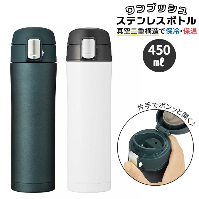 ・毎日の持ち歩きにぴったり♪ワンプッシュ 真空ステンレスボトル(450ml)が発売。