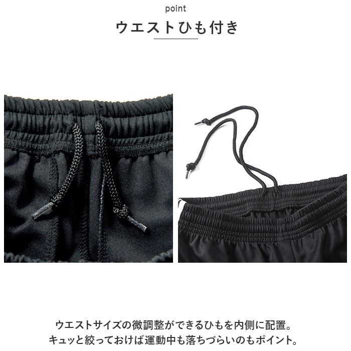 ・ウエストサイズの微調整ができるひもを内側に配置。キュッと絞っておけば運動中も落ちづらいのもポイント。