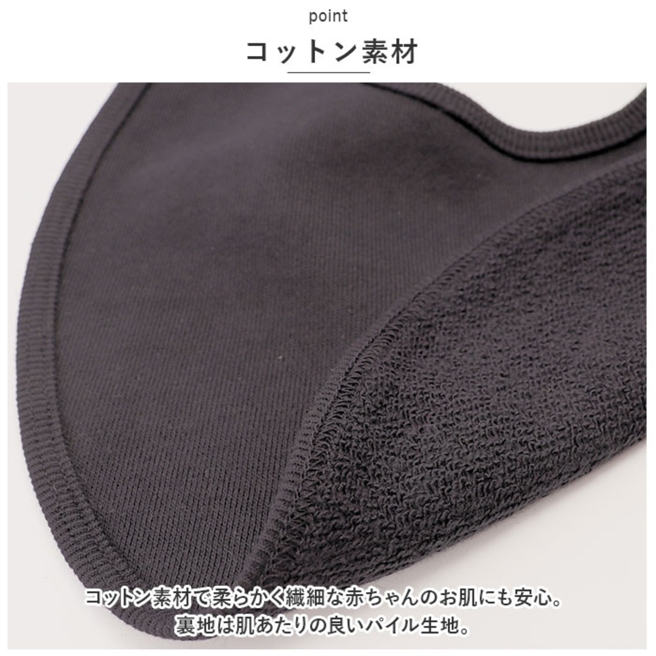 ・コットン素材で柔らかく繊細な赤ちゃんのお肌にも安心。