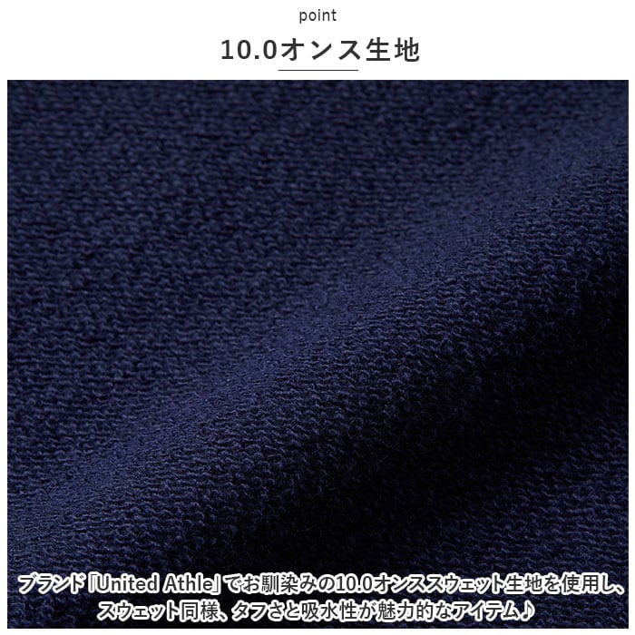 ・ブランド「United Athle」でお馴染みの10.0オンススウェット生地を使用し、スウェット同様、タフさと吸水性が魅力的なアイテム♪
