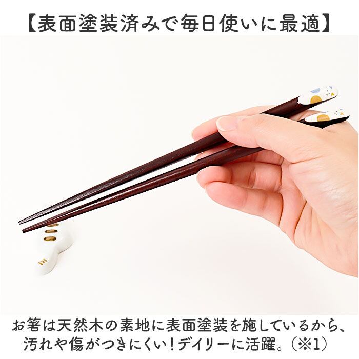 ・お箸は天然木の素地に表面塗装を施しているから、汚れや傷がつきにくい!デイリーに活躍。