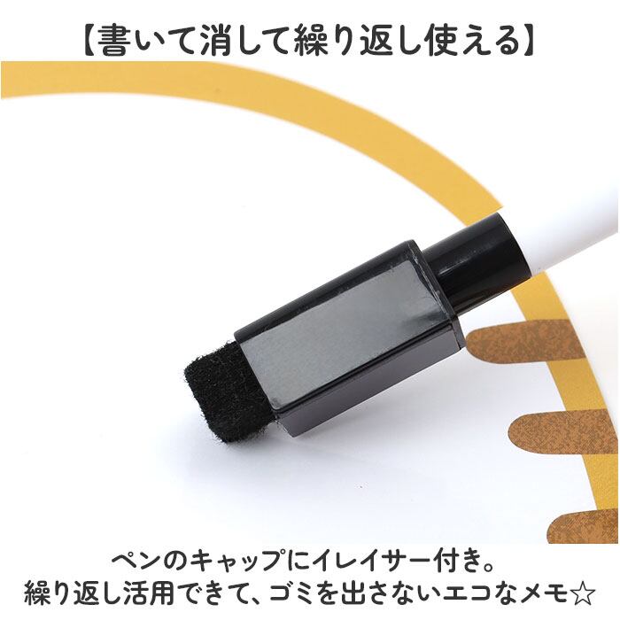 ・ペンのキャップにイレイサー付き。繰り返し活用できて、ゴミを出さないエコなメモ☆
