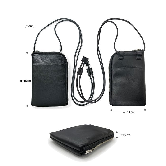 ・前面にはスマホやメガネを入れるのにピッタリ★背面にはICカードや定期などを入れて便利なオープンポケット付き。(※スマホは約7.5cm×高さ約15cm×厚み約1cm程度の目安)
