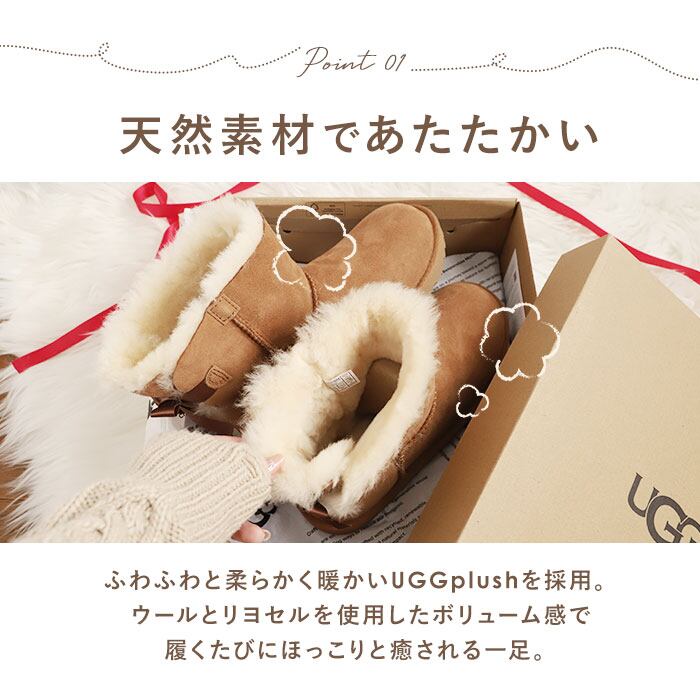 ・インソールにはウール×リヨセルを使用した暖かくソフトな触り心地のUGGplush(アグプラッシュ)を採用。