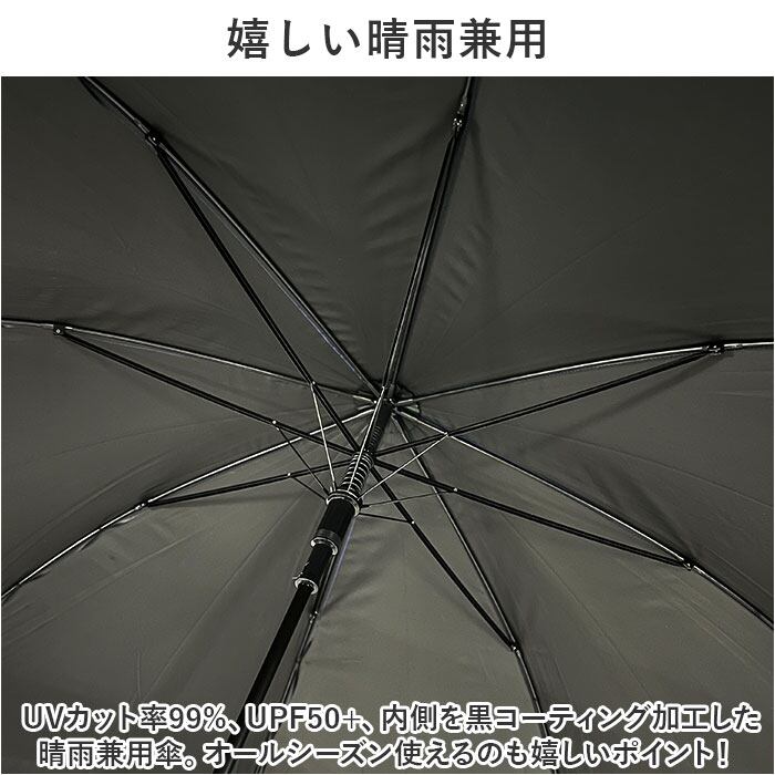 ・UVカット率99%、UPF50+、内側を黒コーティング加工した晴雨兼用傘。オールシーズン使えるのも嬉しいポイント!