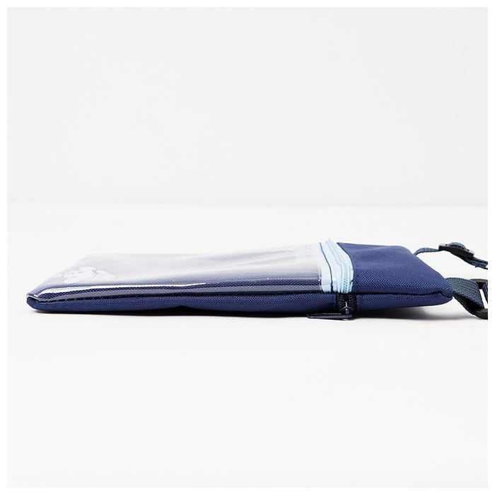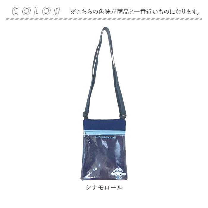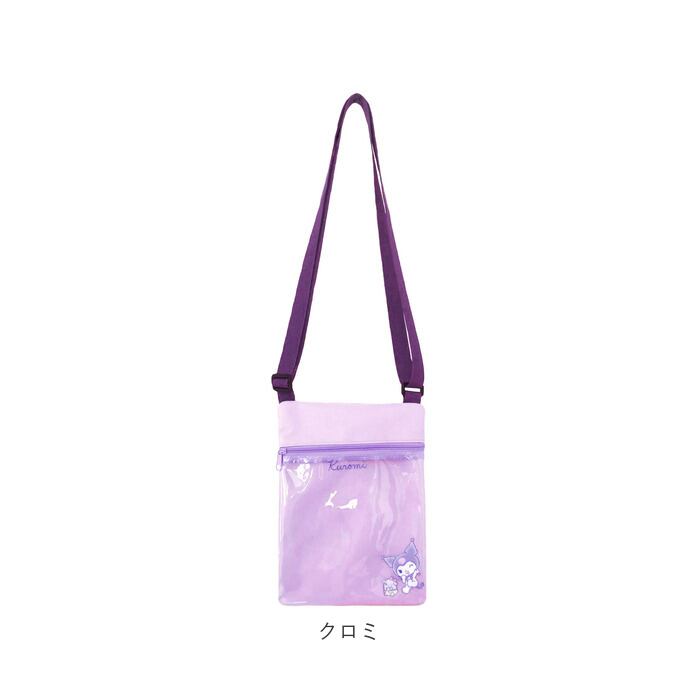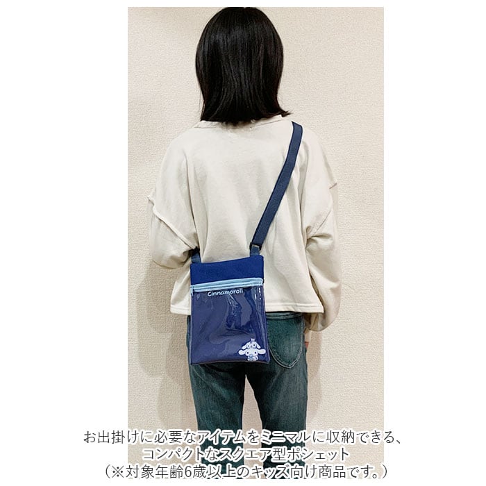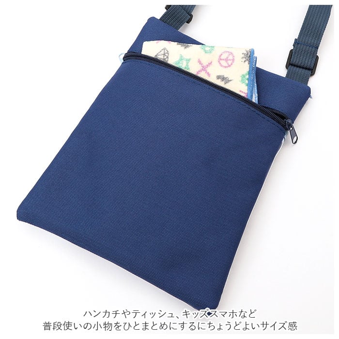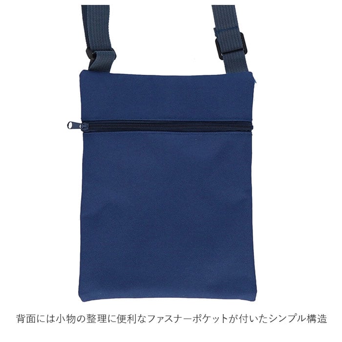 ・ポシェット正面にキャラクターの絵柄をワンポイントにプリントしたクリアポケット、背面にも小物の整理に便利なファスナーポケットが付いたシンプル構造。