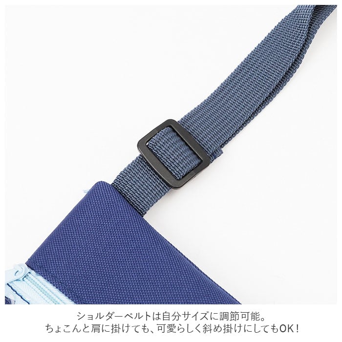 ・ショルダーベルトは自分サイズに調節可能。ちょこんと肩に掛けても、可愛らしく斜め掛けにしてもOK!