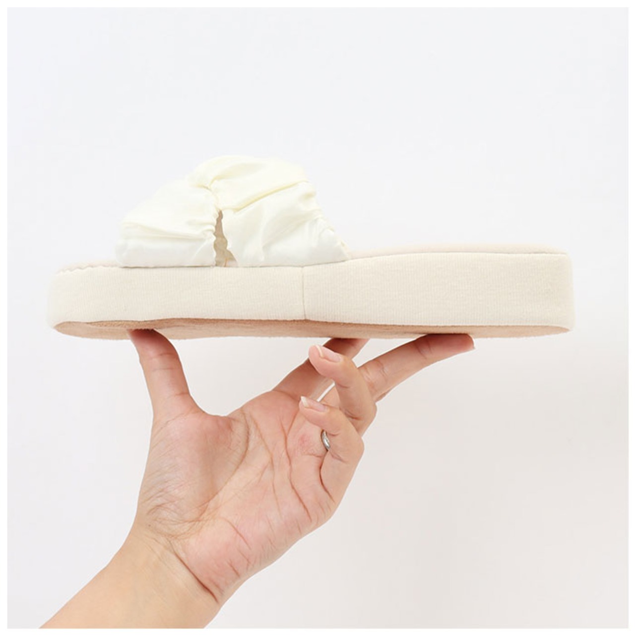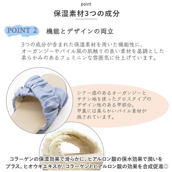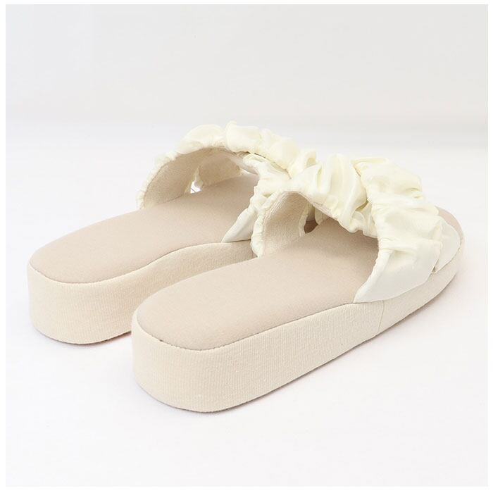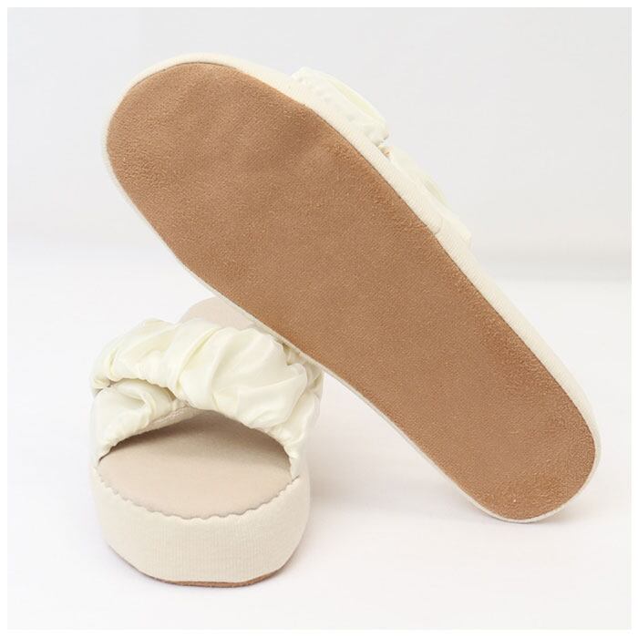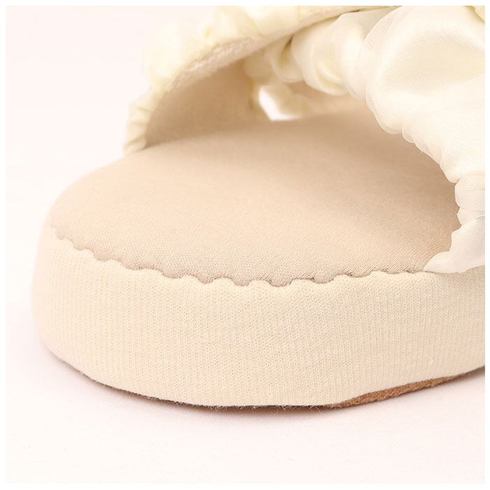 ・シアー感のあるオーガンジーと、サテン生地を使ったクロスデザイン&甲裏は柔らかなパイル素材。デザイン性もばっちり!