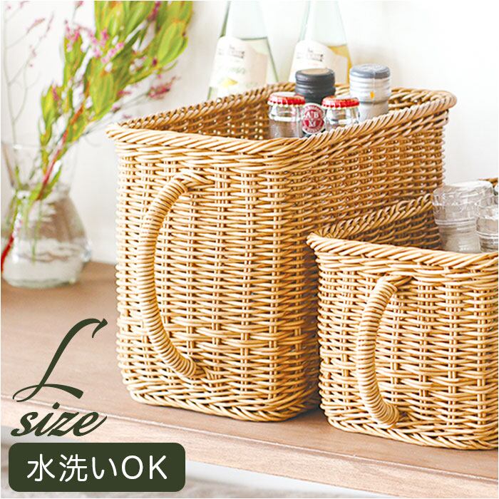 ユティル バスケット 通販 ナイール UTILE キッチンストッカー Lサイズ カゴ かご 籠 水洗い 洗える カゴバスケット 収納かご 収納バスケット キッチン収納 取っ手付き 持ち手付き ナチュラル かわいい おしゃれ かご編み 台所 インテリア 収納