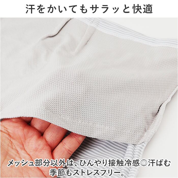 ・メッシュ部分以外は、ひんやり接触冷感◎汗ばむ季節もストレスフリー。