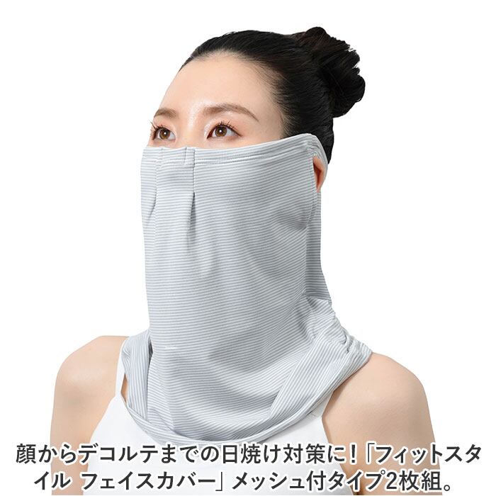 ・顔からデコルテまでの日焼け対策に!「フィットスタイル フェイスカバー」メッシュ付タイプ2枚組。