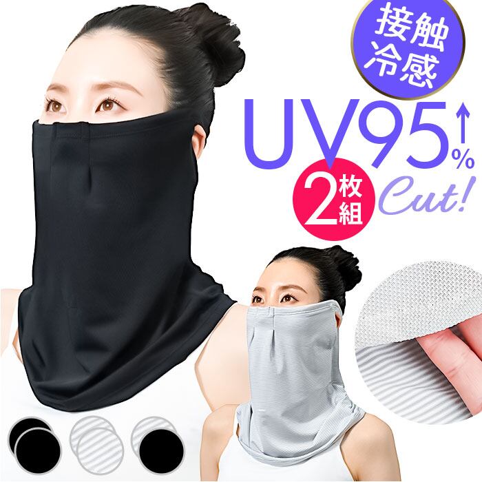 フェイスカバー UVカット 2枚組 通販 フィットスタイル Fit Style フェイス カバー UV 接触冷感 レディース UV-399 メッシュ付き UPF50+ 顔 日焼け対策 デコルテ うなじ 首 自転車 スポーツ 暑さ対策用品 レディースファッション