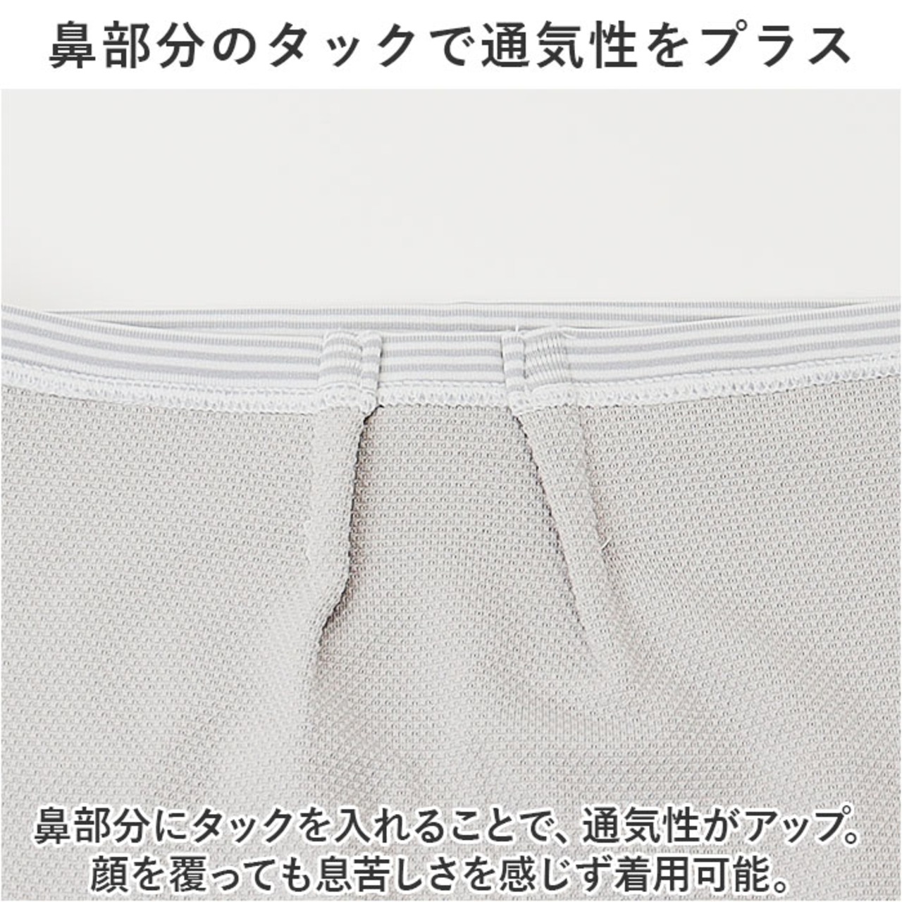 ・鼻部分にタックを入れることで、通気性がアップ。顔を覆っても息苦しさを感じず着用可能。