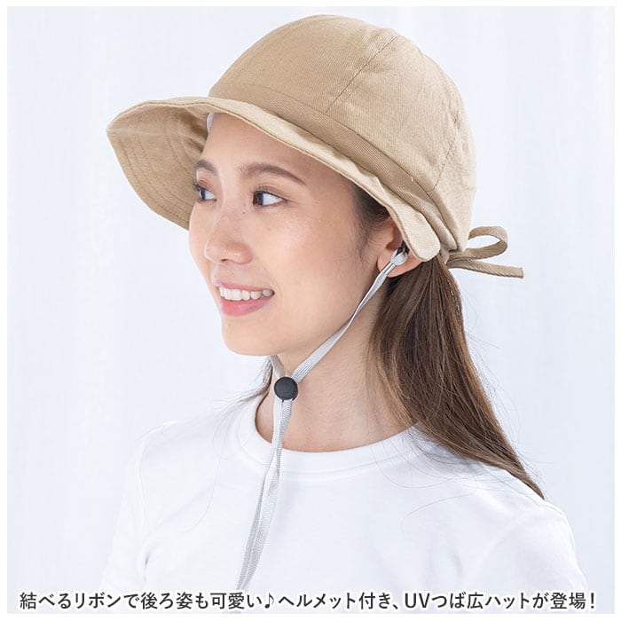 ・結べるリボンで後ろ姿も可愛い♪ヘルメット付き、UVつば広ハットが登場!