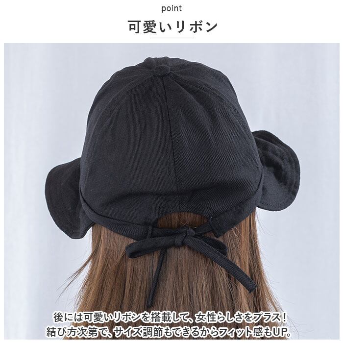 ・後には可愛いリボンを搭載して、女性らしさをプラス!結び方次第で、サイズ調節もできるからフィット感もUP。