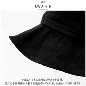 ・つば広ハットの生地はUVカット素材。気になる紫外線から髪とお肌を守ってくれる。お出かけの強い味方!