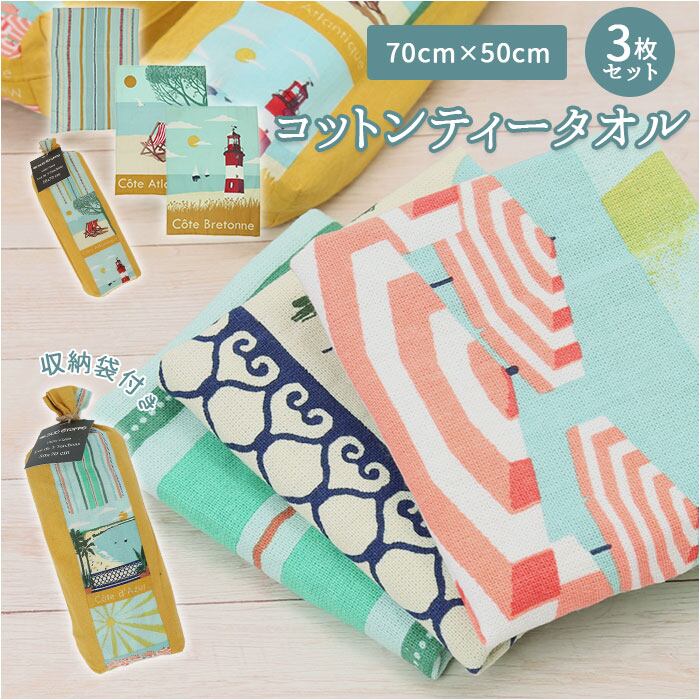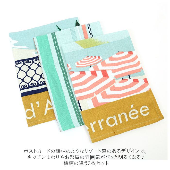 キッチンタオル 北欧 通販 3枚セット 3枚 コットン ティータオル 大判 ふきん 食器拭き キッチンクロス ティータオル キッチン雑貨 キッチンツール sud etoffe France シュッド エトッフ コットンティータオル リゾート ギフト おしゃれ