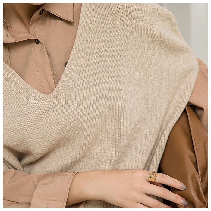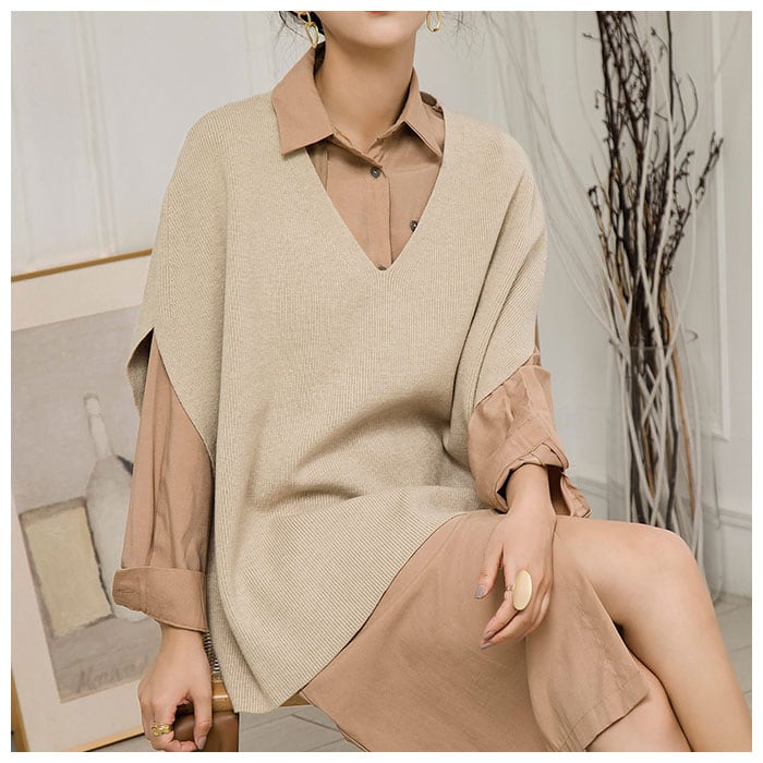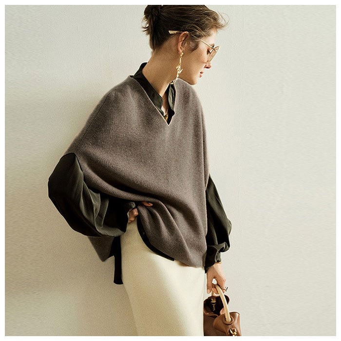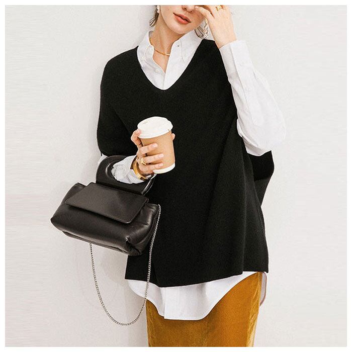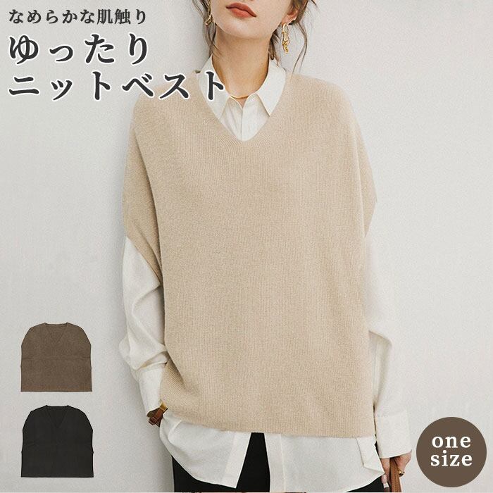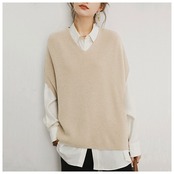 ・レイヤードスタイルを楽しめる♪Vネックデザインの、ゆったりニットベストが発売。