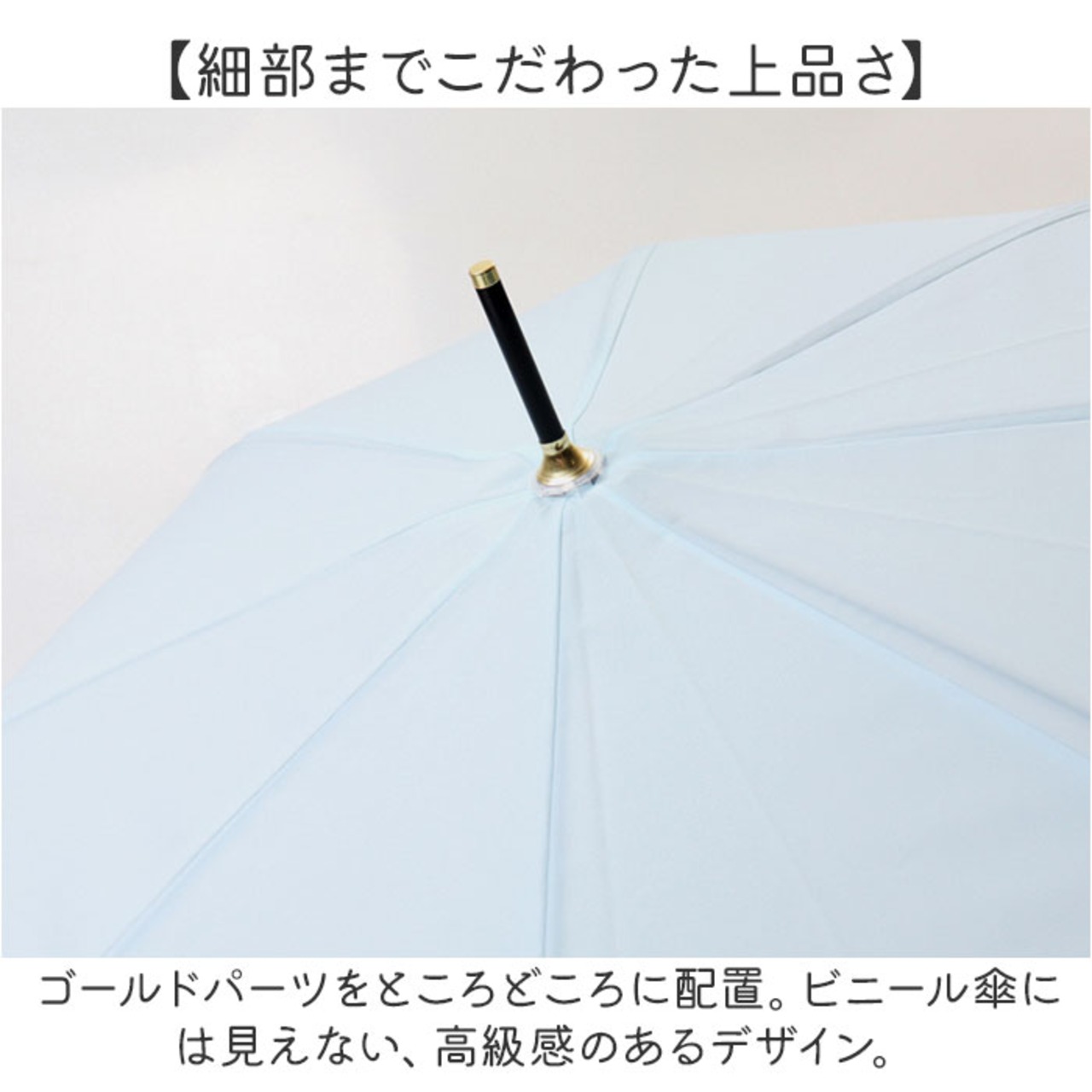 ・ゴールドパーツをところどころに配置。ビニール傘には見えない、高級感のあるデザイン。