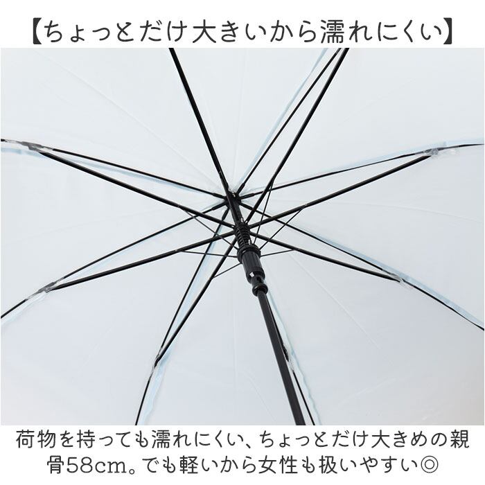 ・荷物を持っても濡れにくい、ちょっとだけ大きめの親骨58cm。でも軽いから女性も扱いやすい◎