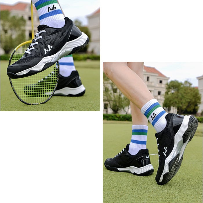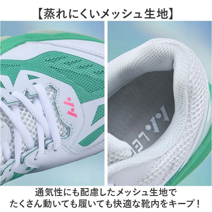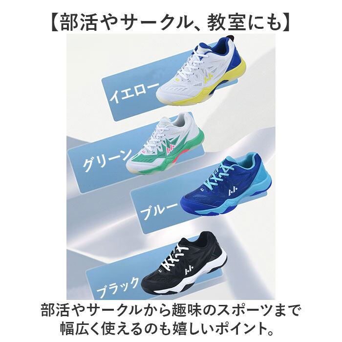 ・テニスやバドミントン、卓球などいろいろなコートで活躍するスポーツシューズ。