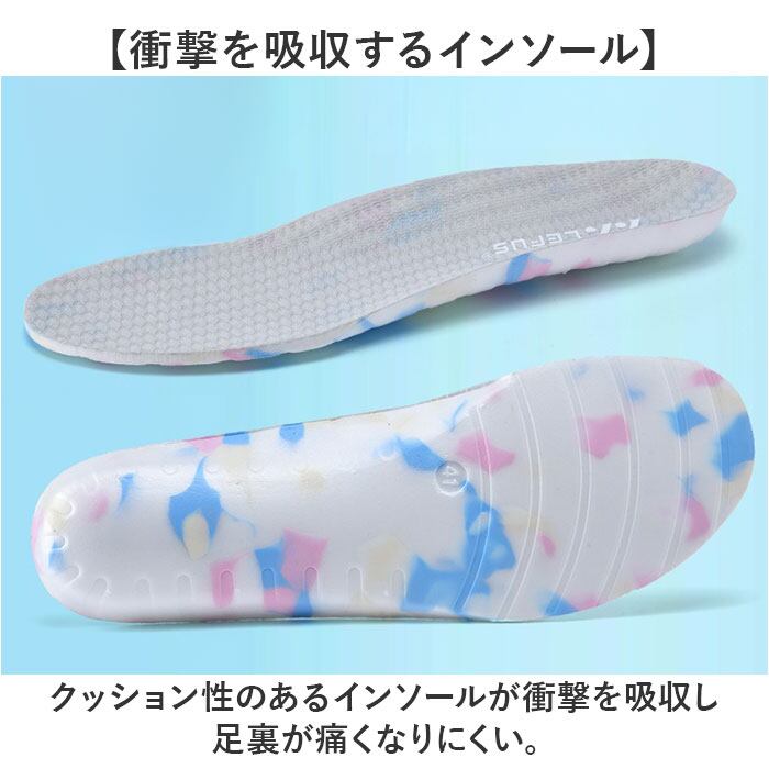 ・クッション性のあるインソールが衝撃を吸収し足裏が痛くなりにくい。
