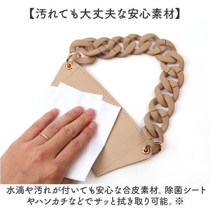 ・水滴や汚れが付いても安心な合皮素材。除菌シートやハンカチなどでサッと拭き取り可能。