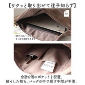 ・合計6個のポケットを配置。細々した物も、バッグの中で探す手間が不要。