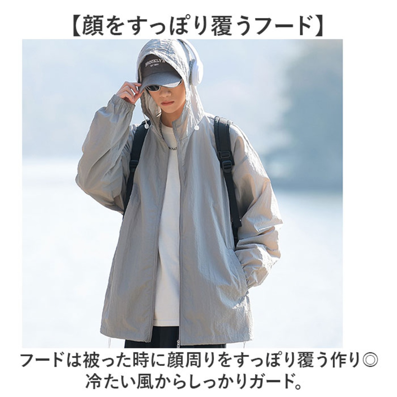 ・フードは被った時に顔周りをすっぽり覆う作り◎冷たい風からしっかりガード。