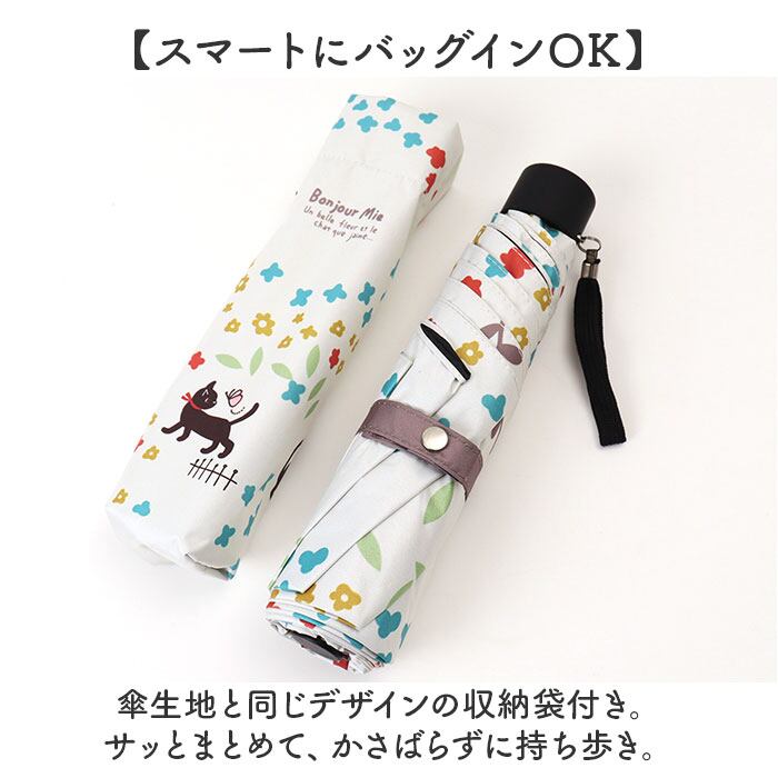 ・傘生地と同じデザインの収納袋付き。サッとまとめて、かさばらずに持ち歩き。