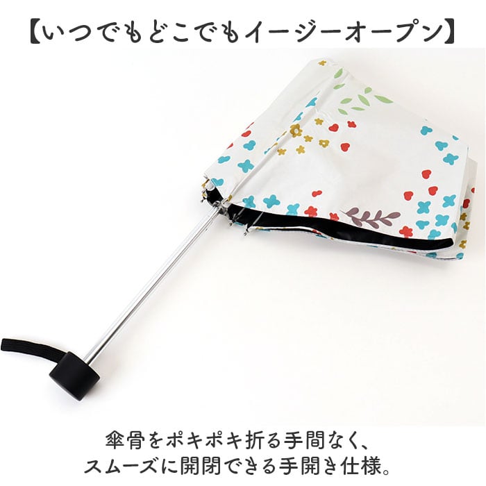 ・傘骨をポキポキ折る手間なく、スムーズに開閉できる手開き仕様。