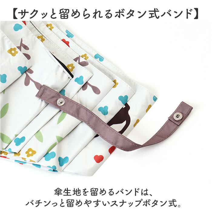 ・傘生地を留めるバンドは、バチンっと留めやすいスナップボタン式。