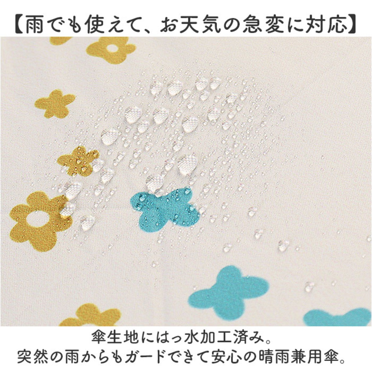 ・傘生地にはっ水加工済み。突然の雨からもガードできて安心の晴雨兼用傘。