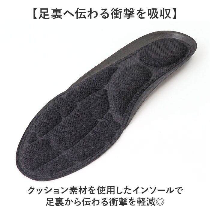 ・クッション素材を使用したインソールで足裏から伝わる衝撃を軽減◎