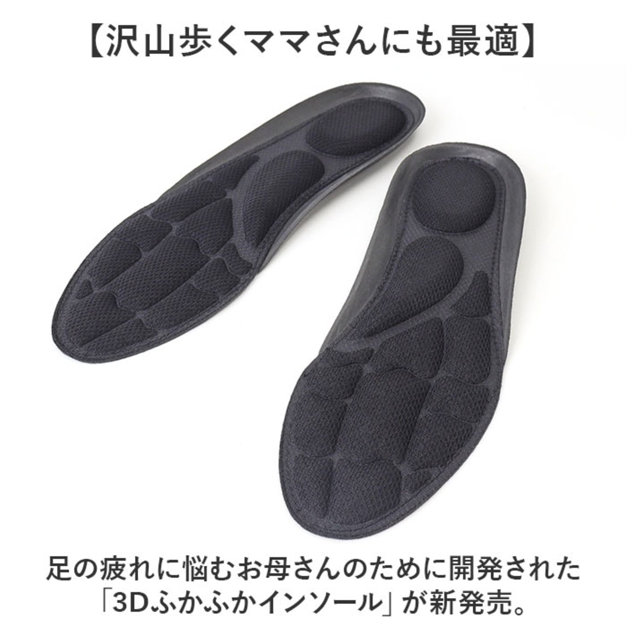 ・足の疲れに悩むお母さんのために開発された「3Dふかふかインソール」が新発売。