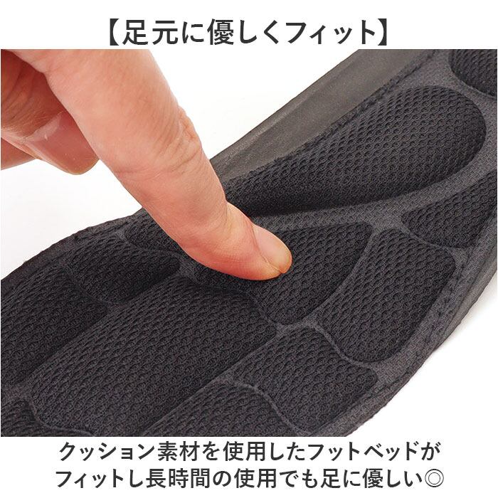 ・クッション素材を使用したフットベッドがフィットし長時間の使用でも足に優しい◎